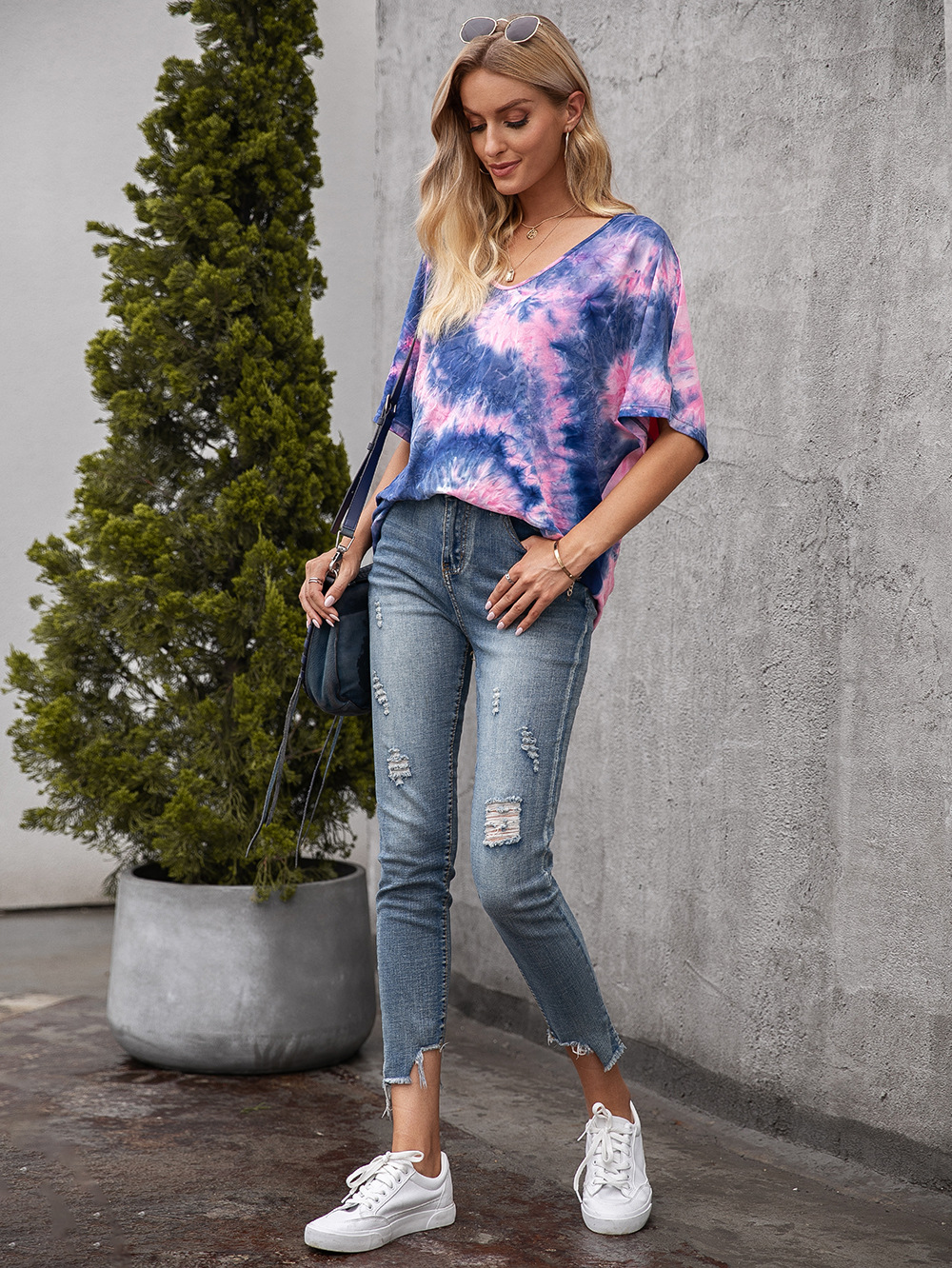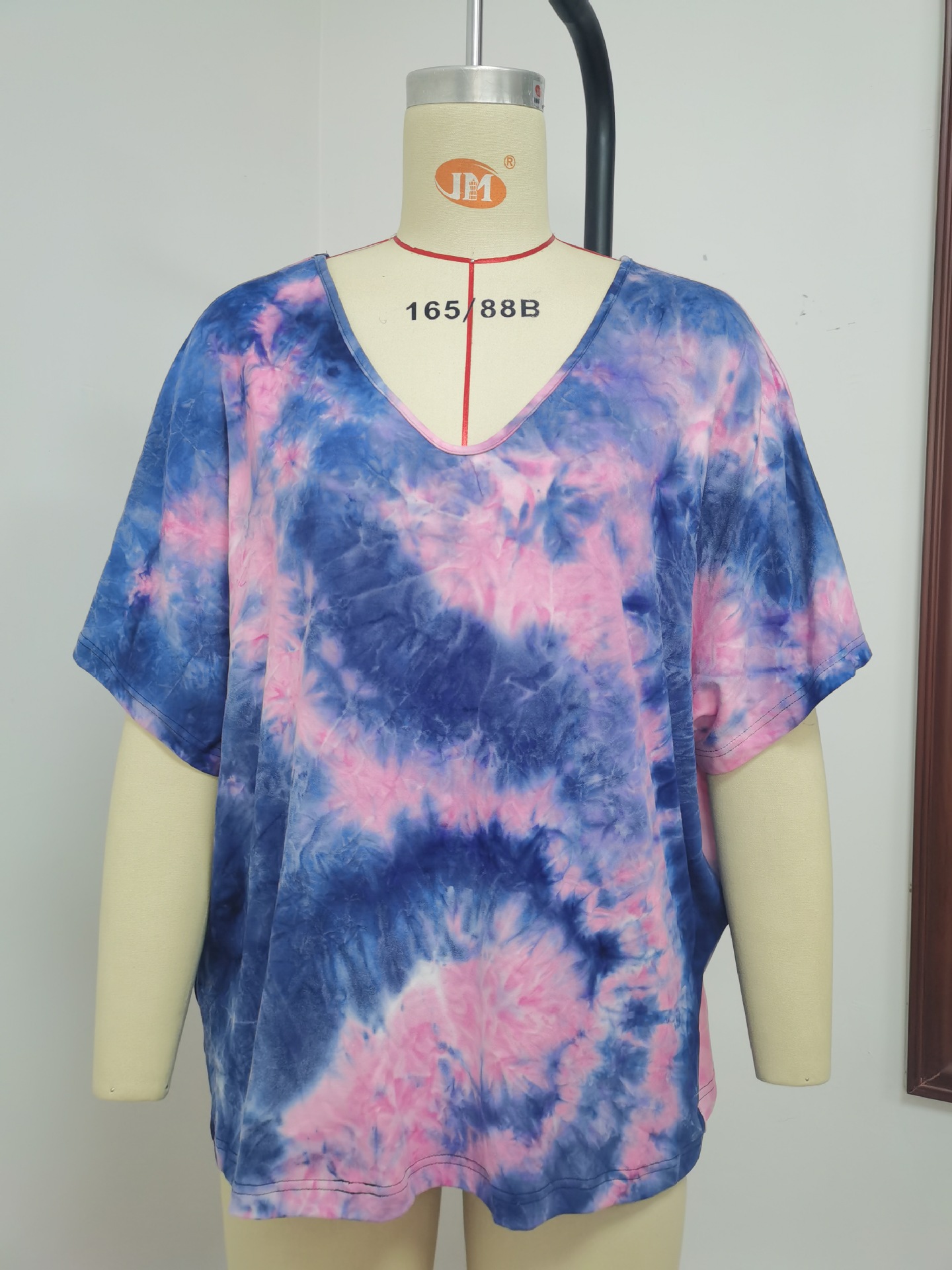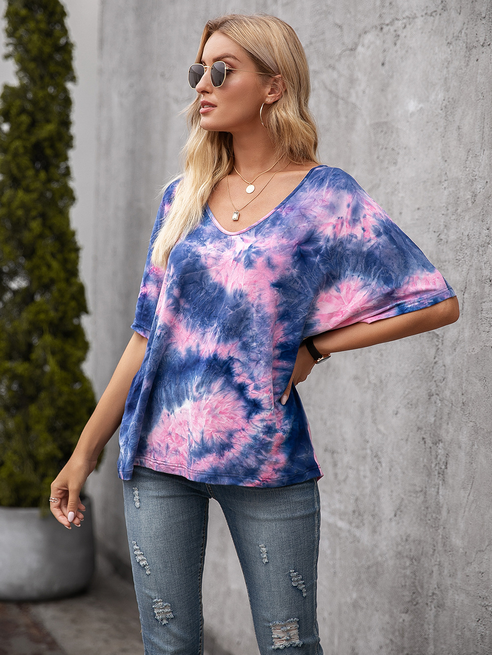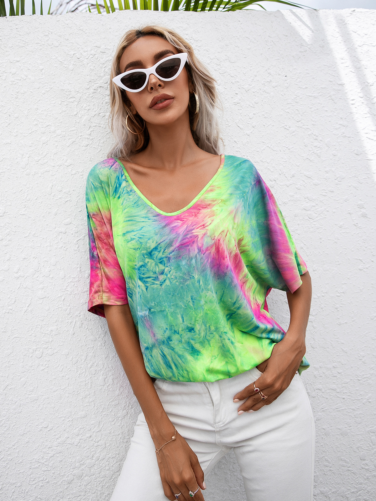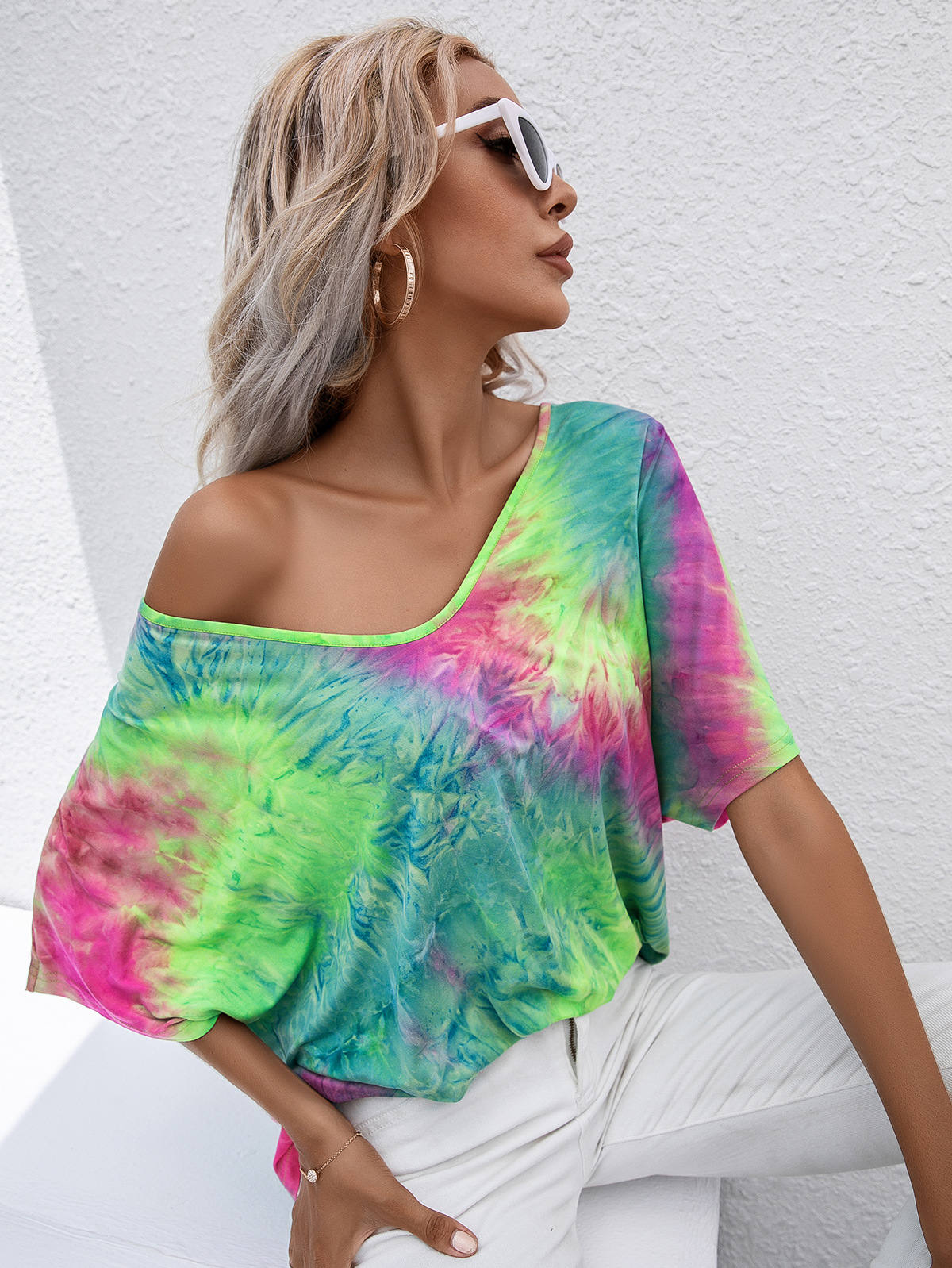 Casual Tie Dye Print Colorful Loose Round Neck Short Sleeve T-Shirt Women