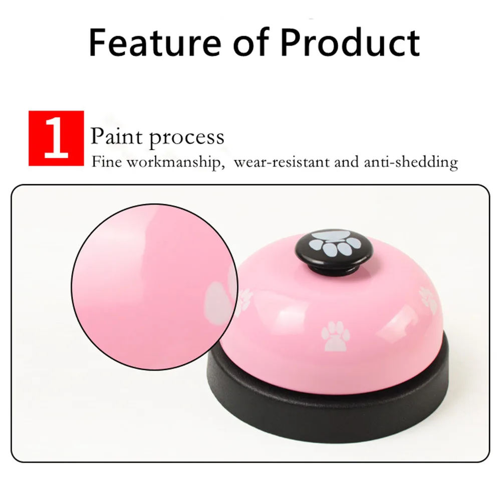 Bright colors, attract the attention of cats and dogs, sturdy and bite resistant, mechanically perfect, no battery required. Ring the bell to eat, ring the bell to urinate, develop intelligence, interact with pets